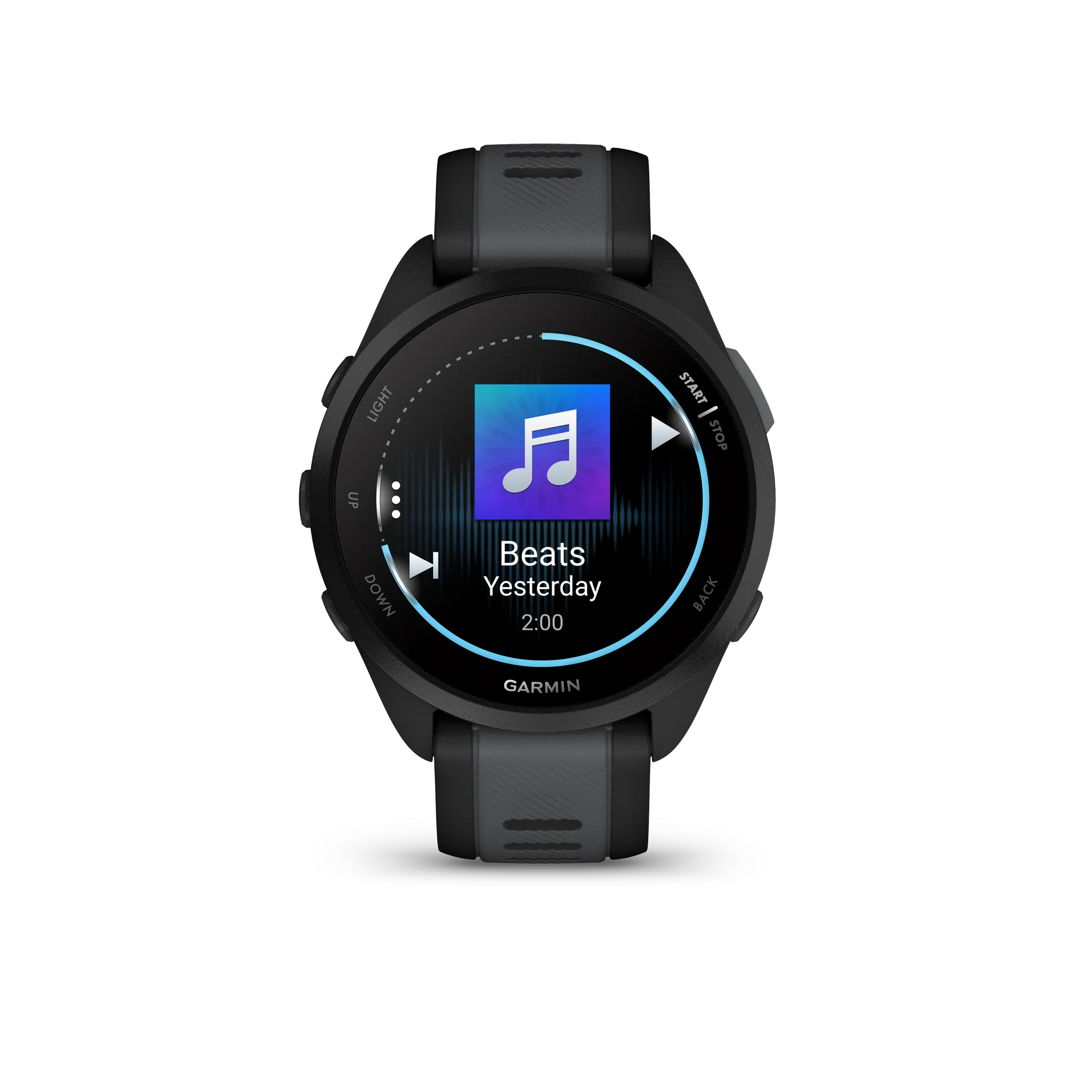 Go ahead — sign up for that race, and train brilliantly with the easy-to-use Forerunner® 165 Music GPS running smartwatch. With accurate pace, distance and heart rate, you’ll see your progress shine on the watch’s AMOLED touchscreen display while Garmin Coach and race adaptive training plans help you chase your goals. Wake up to your morning report to see health insights alongside an overview of sleep, recovery and training outlook (data presented is intended to be a close estimation of metrics tracked). Use training effect and training effect labels to see how your workouts impact your fitness and to understand the primary benefit achieved from your workout. Then, check recovery time to know how long to take it easy between runs. Let the beat push you further with built-in music storage for phone-free listening. Pair your watch to your smartphone, and your notifications will show up right on your wrist. Get a more complete picture of your health, not just a glimpse, from your Forerunner 165 Music smartwatch, with up to 11 days of battery life in smartwatch mode.